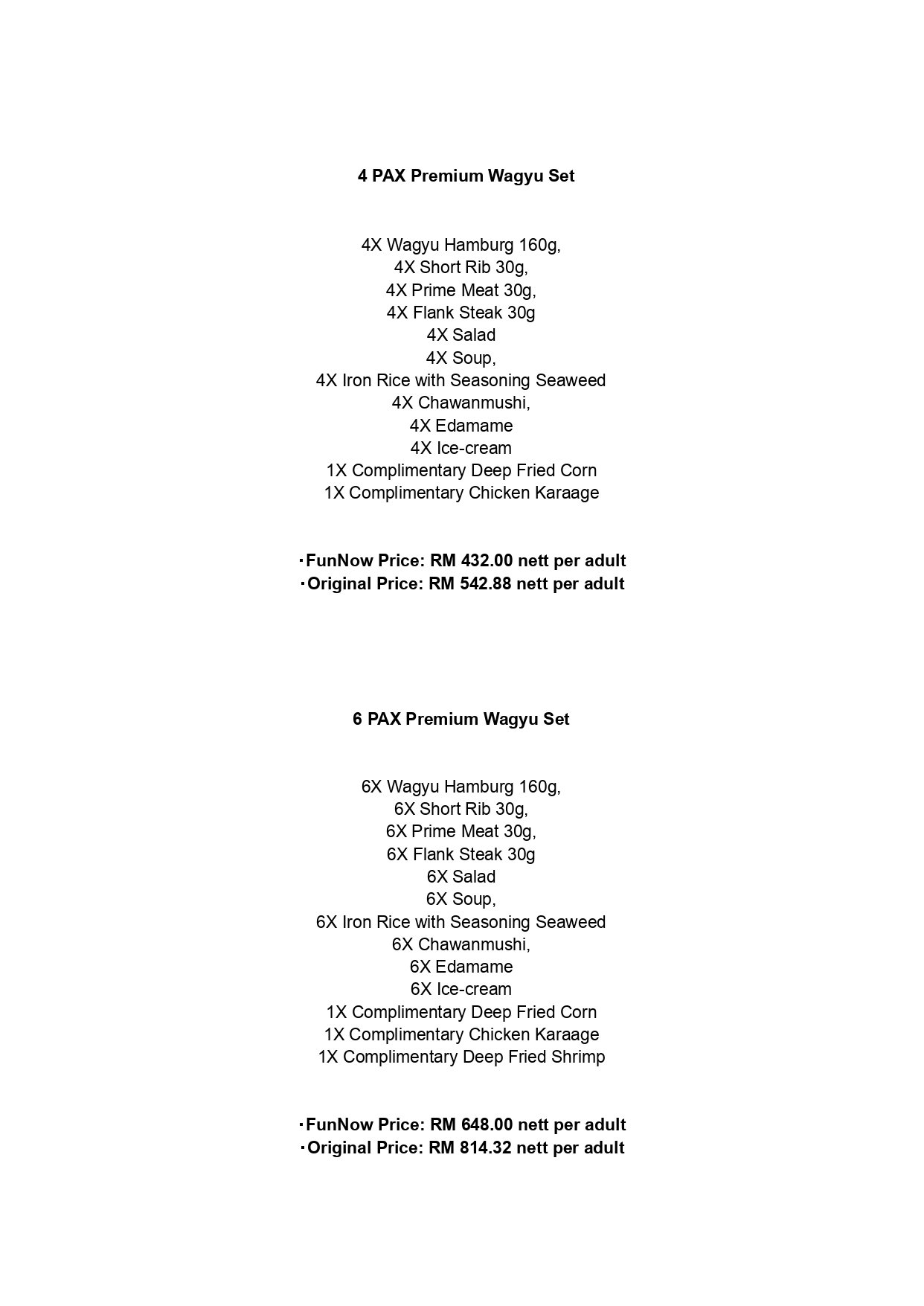 6 Pax | Premium Wagyu Set with complimentary Deep Fried Corn & Chicken Karaage & Deep Fried Shrimp
